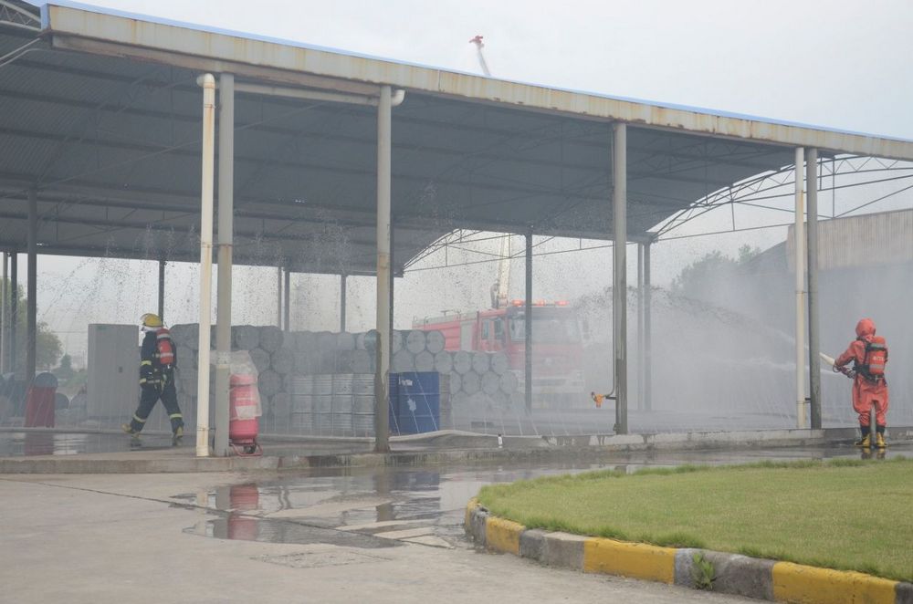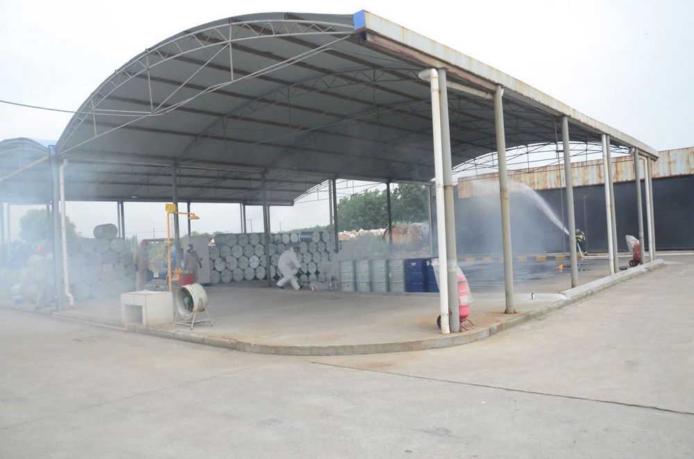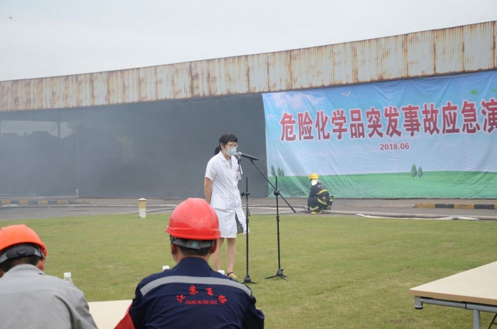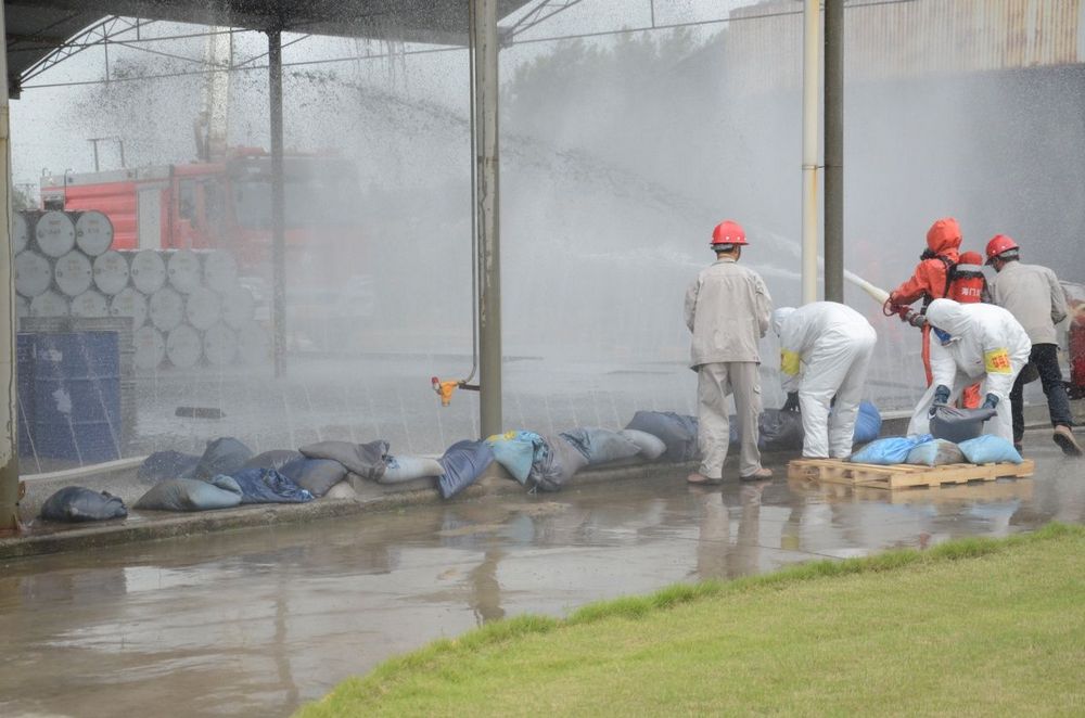 公司啟動應(yīng)急預(yù)案后,防化搶險(xiǎn)組第一個(gè)沖到現(xiàn)場