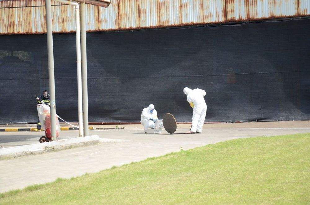 環(huán)境應(yīng)急組的人員迅速要換閥門,讓事故水流入事故應(yīng)急池